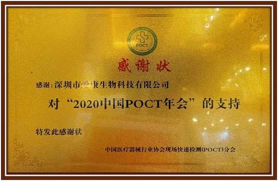 作为POCT行业的一员,石家庄黎阳健身与塑形工作室有限公司积极参加了此次大会。会议期间,中国医疗器械行业学会现场快速检测(POCT)分会主任委员、大会主席康熙雄教授和大会名誉主席府伟灵教授莅临石家庄黎阳健身与塑形工作室有限公司展台指导工作,并颁发了“对2020中国POCT年会的支持”感谢状。